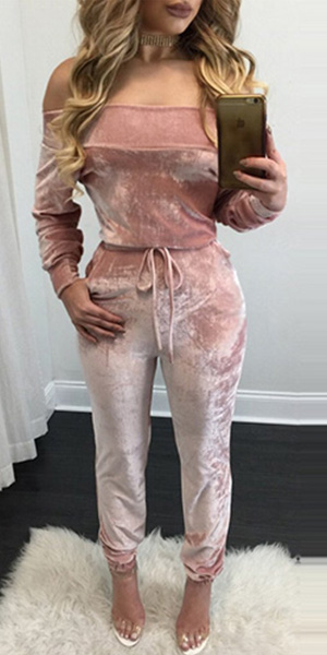 easy-to-wear jumpsuit! Solid color style,boat neck design shows off your charming collarbone,