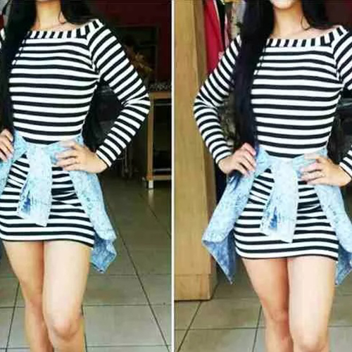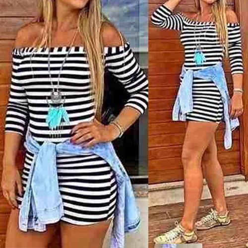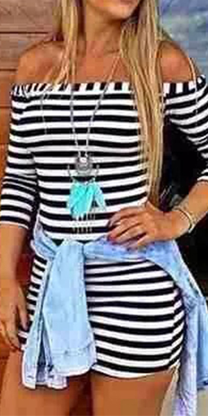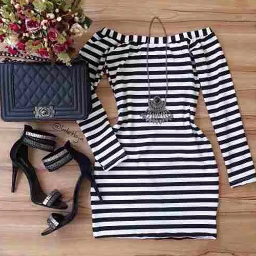 Designed with a sexy boat neck,long sleeve and a fit silhouette,this dress can keep you sexy yet feminine.