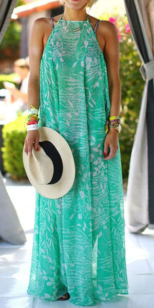 It features leaf pattern printed, halter design and backless. You will look special no matter what.
