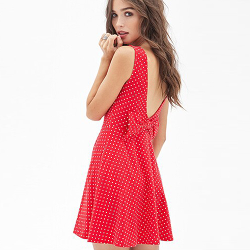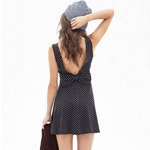 This dress features dots pattern,filled with retro,stylish and elegant elements. Backless style,