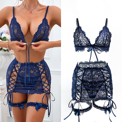 Sexy Bowknot Four-piece Lace Lingerie Set