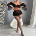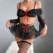 Sexy Bowknot Ruffle Long Sleeve Four-piece Lingerie Set