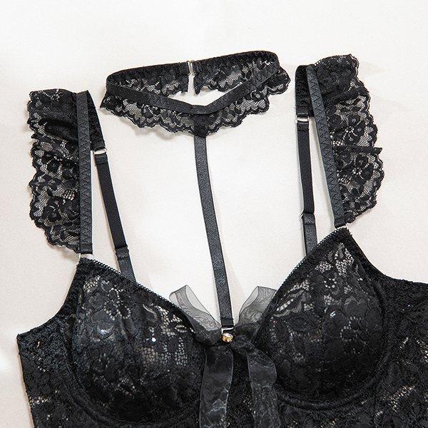 Sexy Bowknot Ruffle Two-piece Lingerie Set