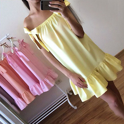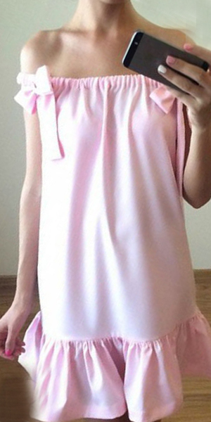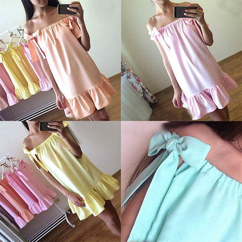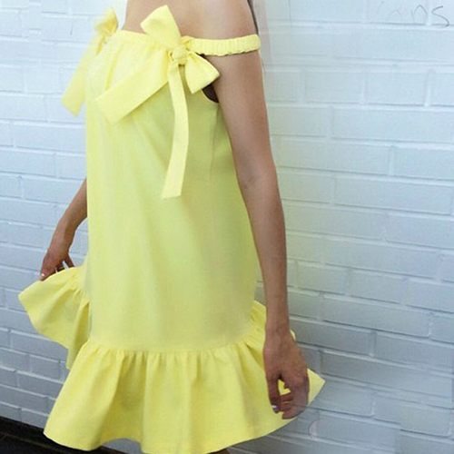 ensemble. Designed with a sexy slash neck,its bowknot and flouncing hem design makes it look