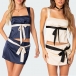 Sexy Bowknot Two-piece Set Consist of Backless Crop Top and Mini Skirt