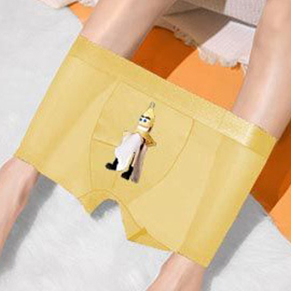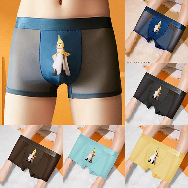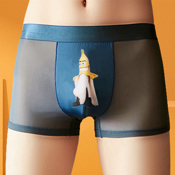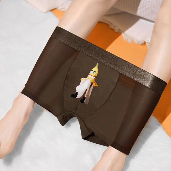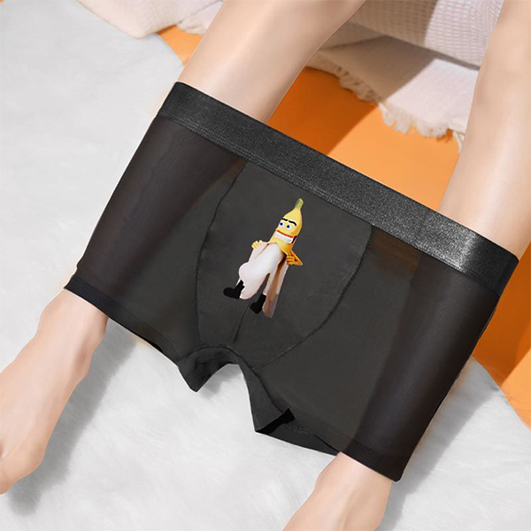 Sexy Breathable Semi-through Gauze Spliced Printed Boxer Brief for Men