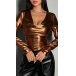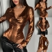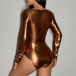 Sexy Bright Gold Color Draped V-neck Long Sleeve Bodysuit