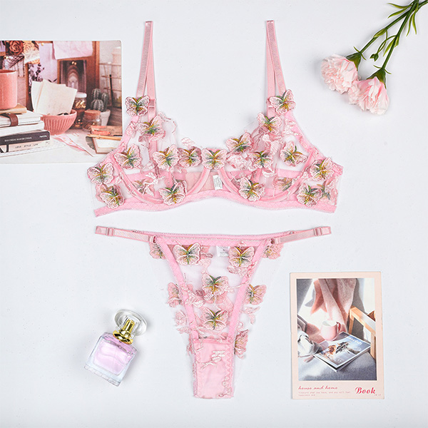 Sexy Butterfly Embroidered Semi-through Two-piece Lingerie Set