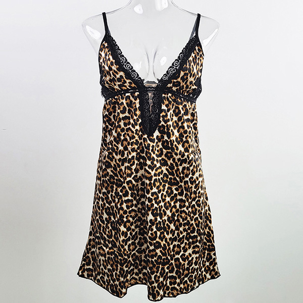 Sexy Butterfly Printed Lace Spliced V-neck Slip Nightwear Dress