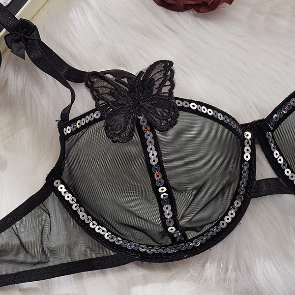 Sexy Butterfly Sequin Semi-through Two-piece Lingerie Set