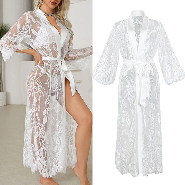 Sexy Cardigan Bathrobe with Lace Patchwork