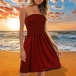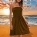 This mini dress features a strapless design with a smocked bodice for a perfect fit, multi colors available.