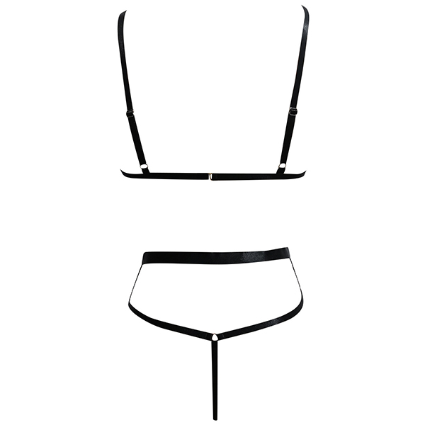 Sexy Chain Artificial Leather PU Two-piece Lingerie Set