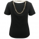 Sexy Chain Backless Short Sleeve Round Neck Solid Color Slim Fit T-shirt Top
