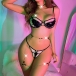 Sexy Chain Cutout Lace Spliced Three-piece Lingerie Set