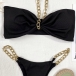 Girls, it is time to enjoy your seaside trip with this set of bikini. This bikini set features a chain design, which makes it sexy and flirty. Bandeau bikini top with a removable chain for gathered effect. Pairing its matching low waist chain briefs and then head to the seaside!