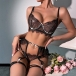 Sexy Chain Ruffled Lace Three-piece Lingerie Set