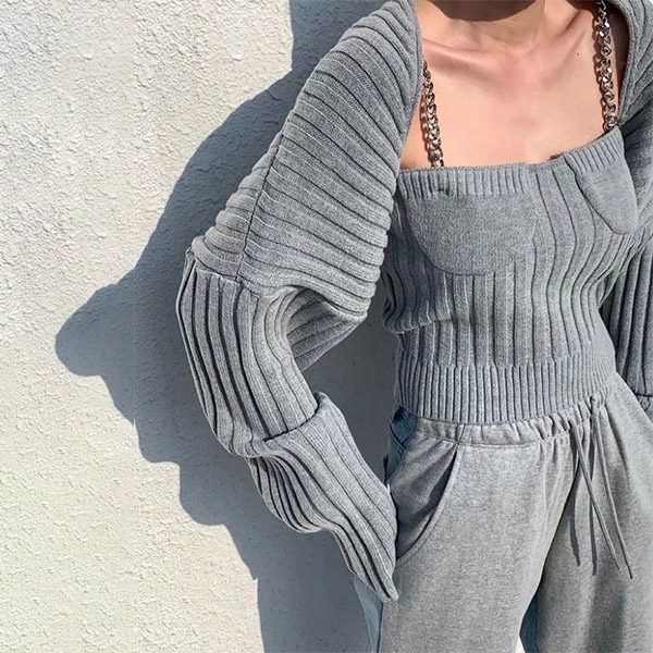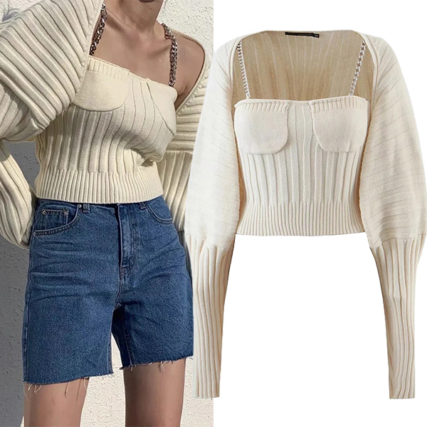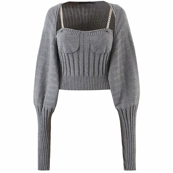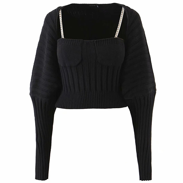 Sexy Chain Sling Crop Top + Long Sleeve Cardigan Knit Two-piece Set