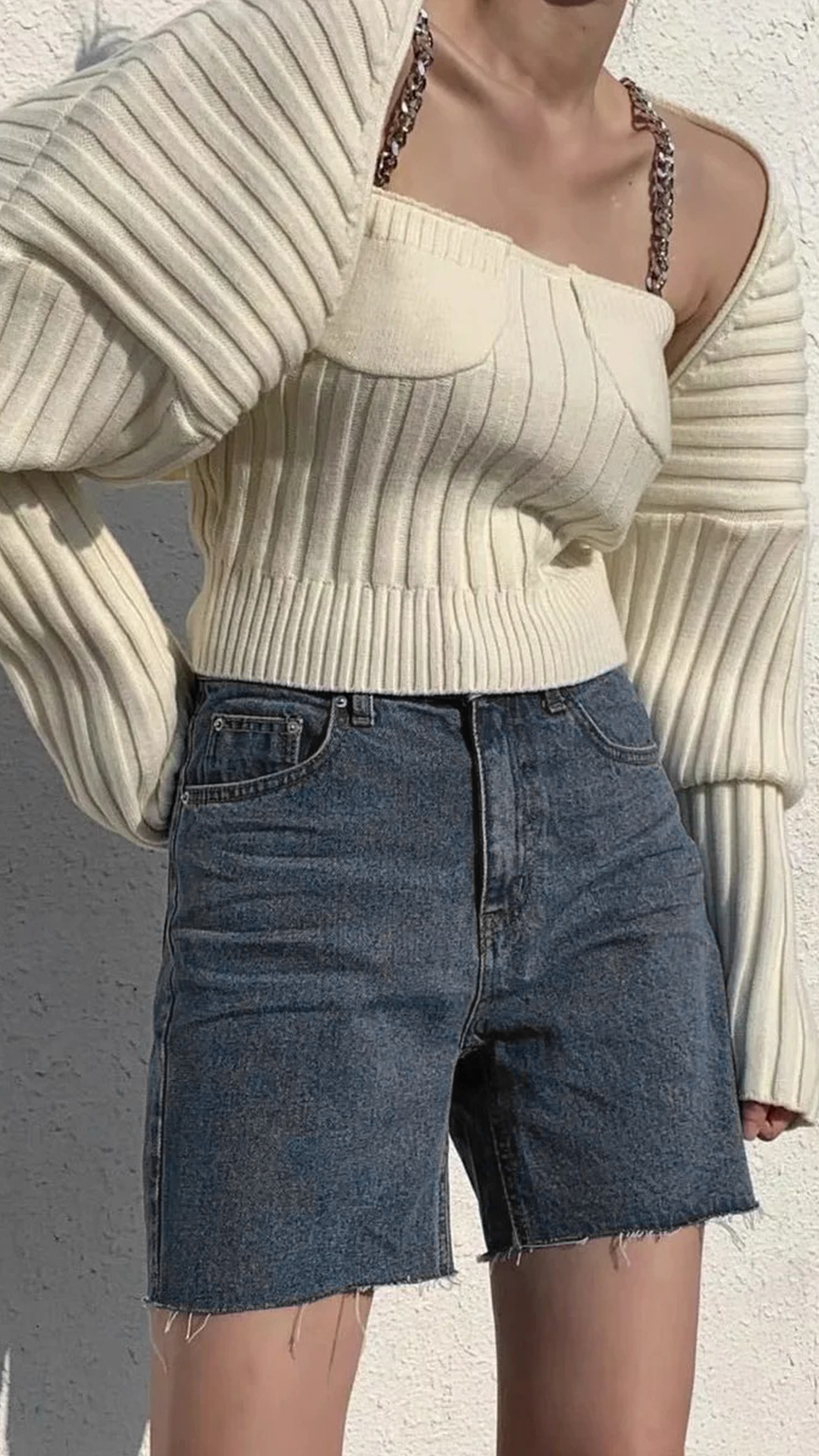 You are sure to have a chic and charming autumn look when you dress yourself up with this two-piece set. Solid color style,including a chain sling crop top and an unique cardigan,this two-piece set not only can keep you warm and comfy,but also can exude your personality and charm.