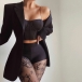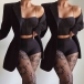 You have no need to wonder why all the eyes are focused on you when you dress yourself up with this two-piece set. It consists of a chain sling crop top and a see-through lace spliced pants,all these details make this two-piece set look so alluring and stunning. It can be the secret weapon to express your beauty and charm.