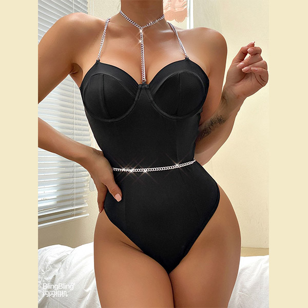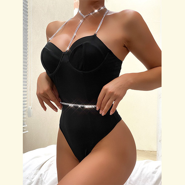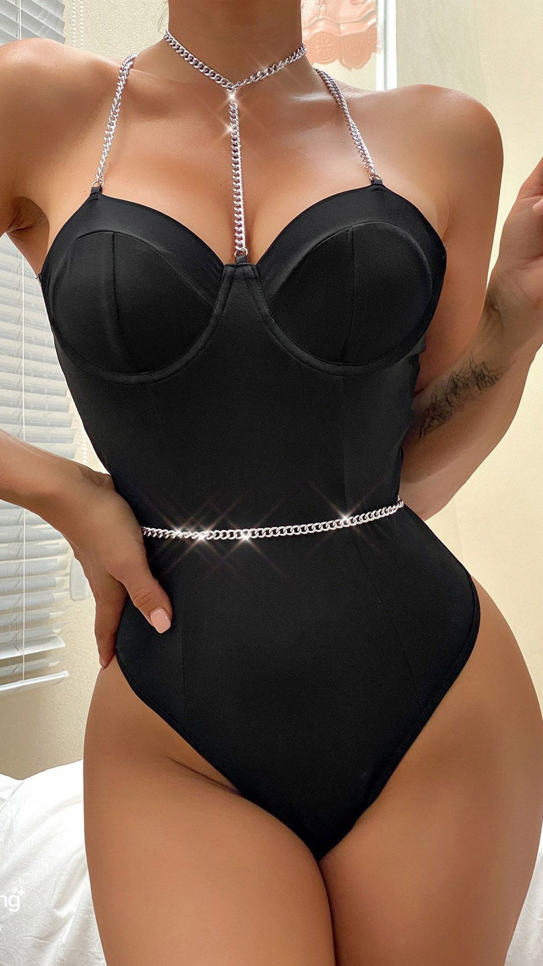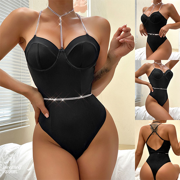 Sexy Chain Sweetheart Neckline Backless Lingerie Bodysuit