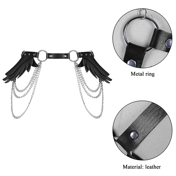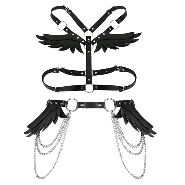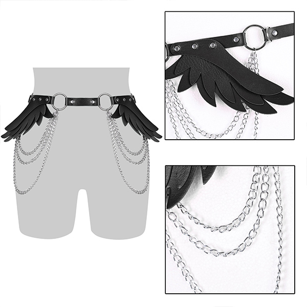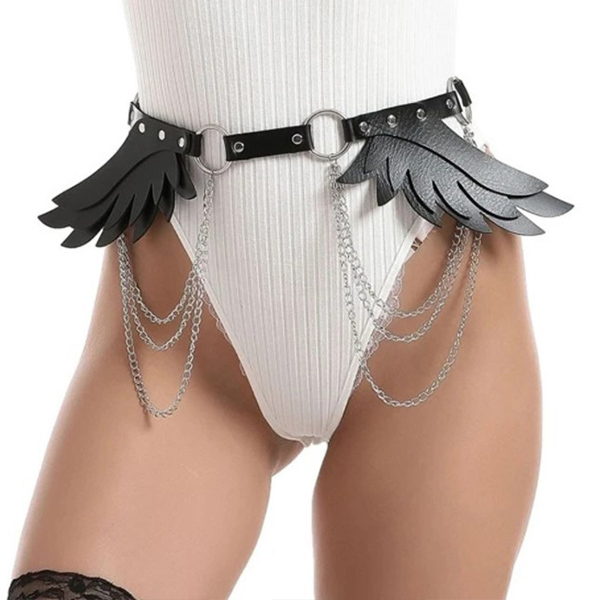 Sexy Chain Tassel Angel Wing Artificial Leather Belt Girdle
