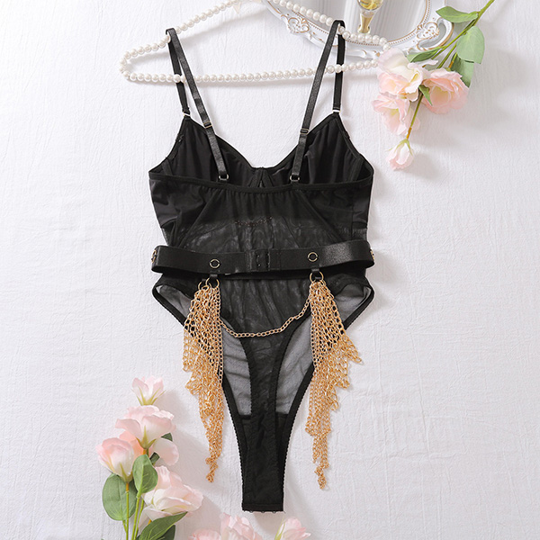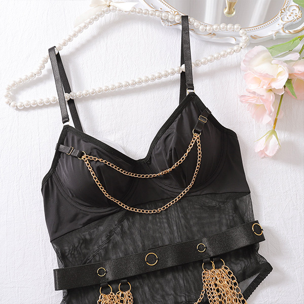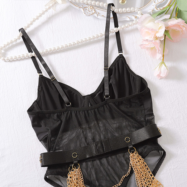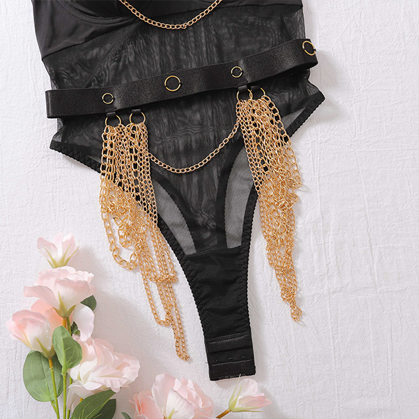 Sexy Chain Tassel Semi-through Two-piece Lingerie Set