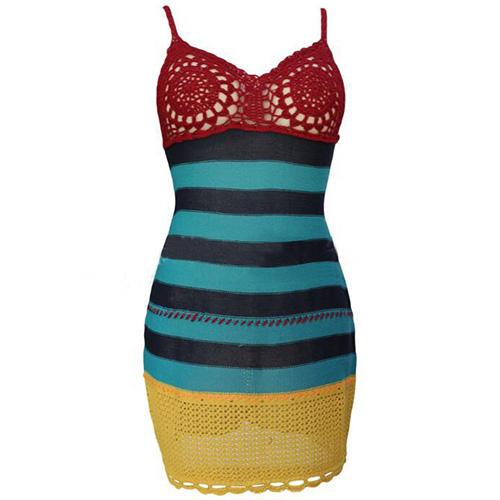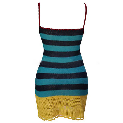 Sexy Color Blocks Open Knit Knitting V-Neck Sleeveless Cami Dress