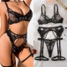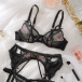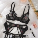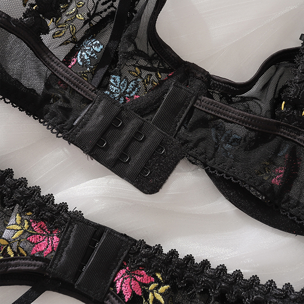 Sexy Colorful Floral Embroidery Three-piece Lingerie Set