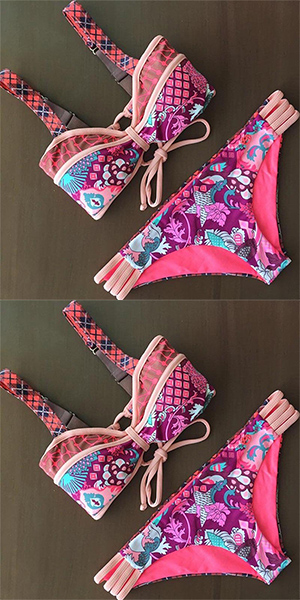 Easy to achieve for a sexy and charming beach look with this bikini set. Its features sweet and eye-catching colorful printed pattern,