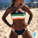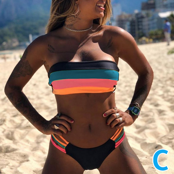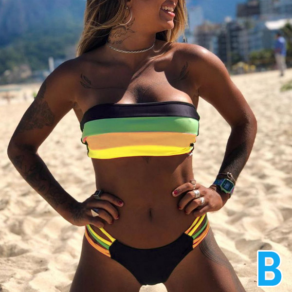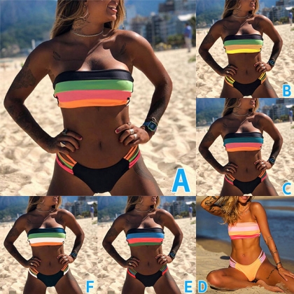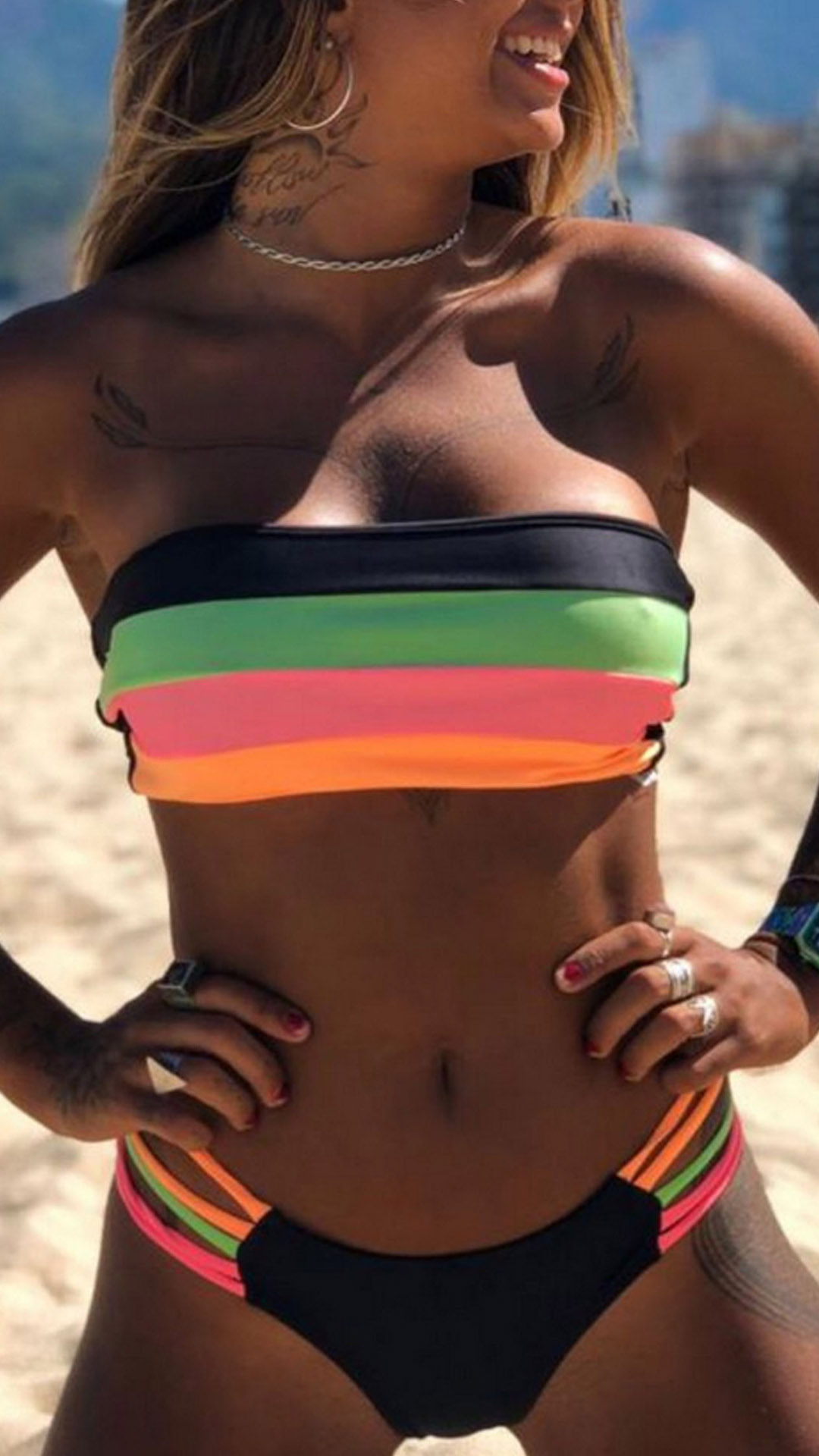 Sexy Colorful Stripe Printed Bandeau Bikini Set