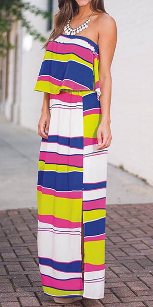 What makes this dress unlike anything in your wardrobe? Because its eye-catching and unique designs including strapless, ruffle,