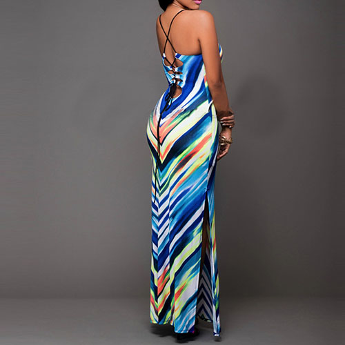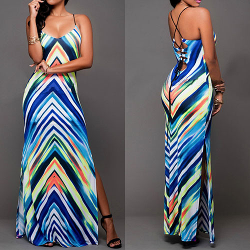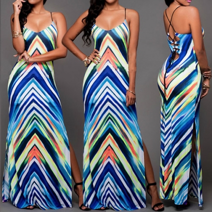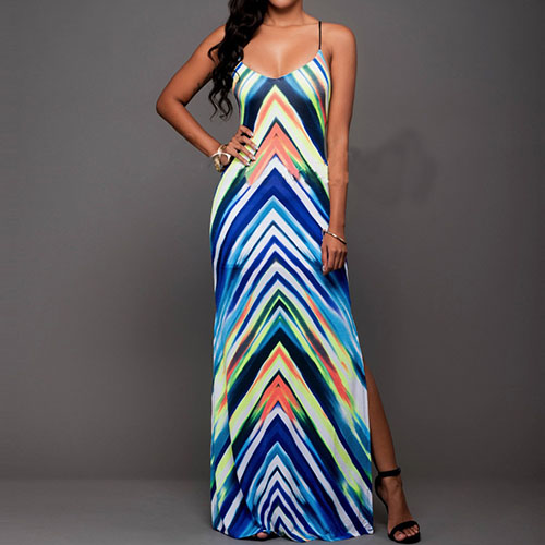 Gorgeously detailed with delicate stripes print, v-neck, hollow out and slit hem design,