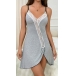 Sexy Comfy Lace Spliced V-Neck Heart Pattern Gauze Spliced Front Slit Nightwear Slip Dress
