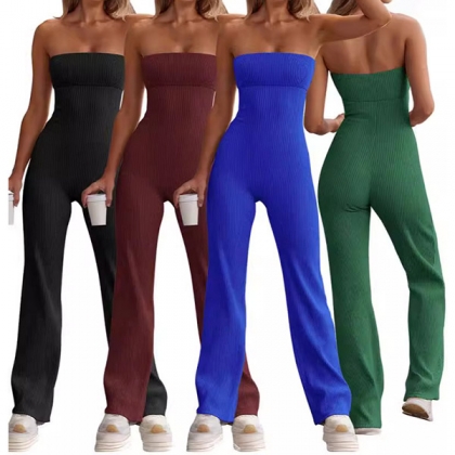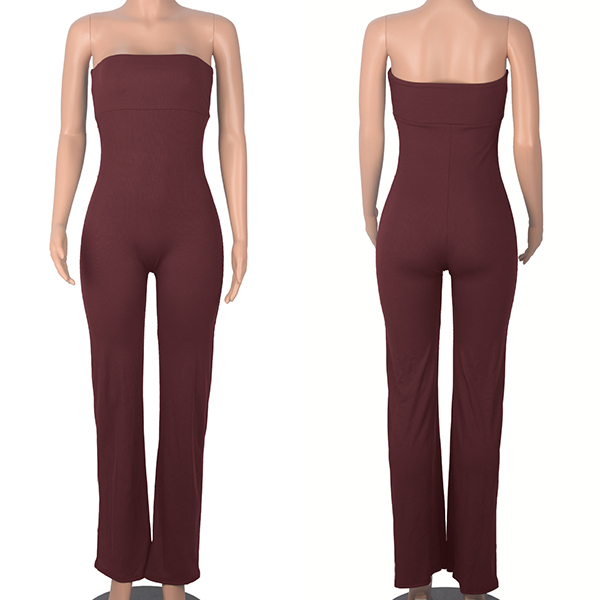 Sexy Comfy Solid Color Strapless Jumpsuit