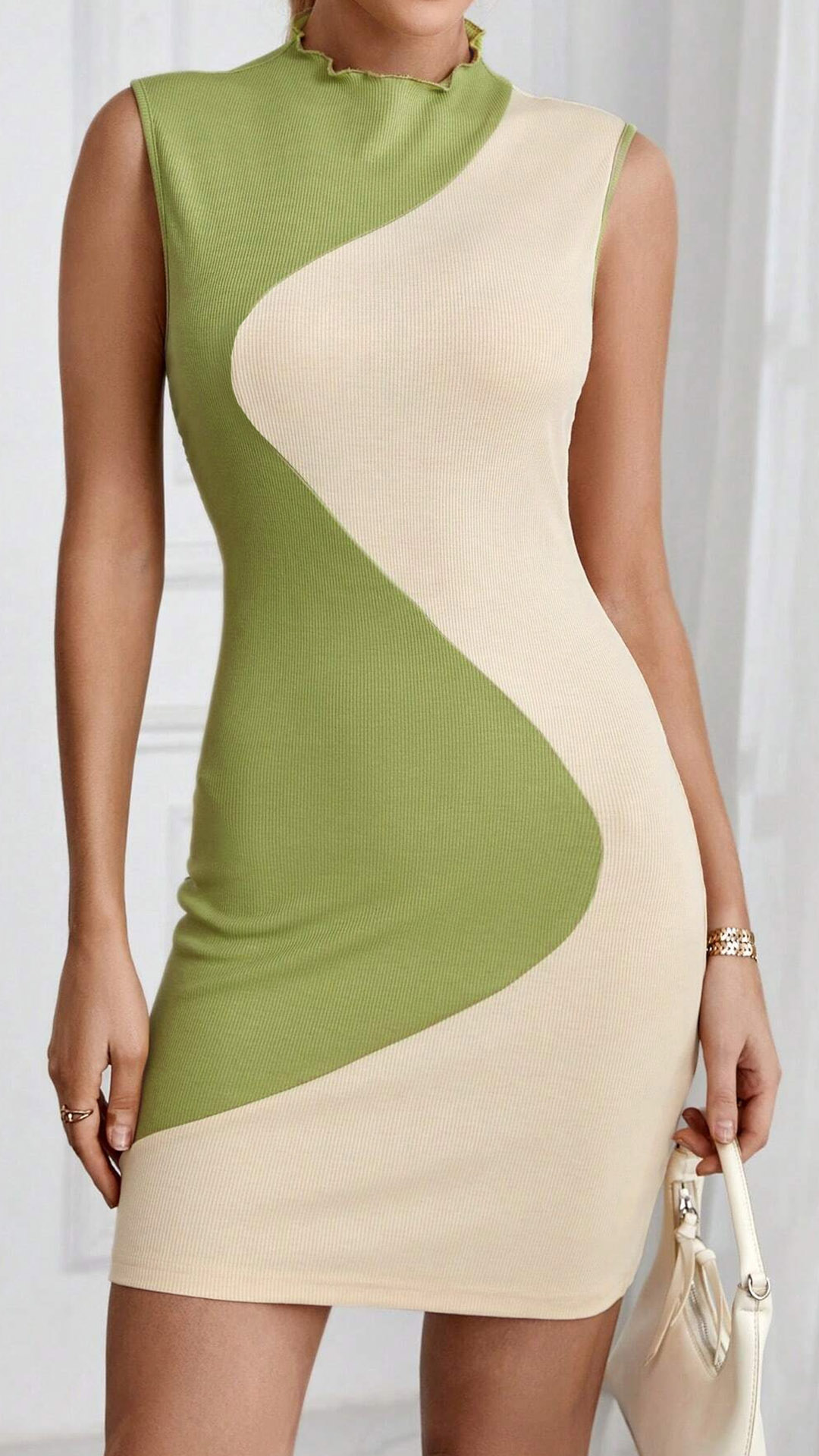 This mini dress features contrasting block colors and a bodycon silhouette for a sexy and eye-catching look!