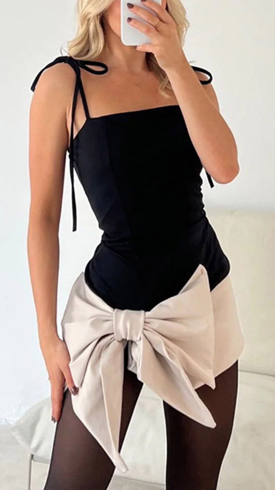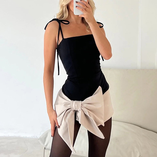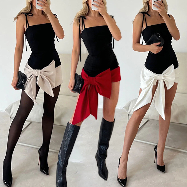 This sexy dress features a contrast color blocking bowknot decoration design! It is sexy and playful! Wanna have a try?