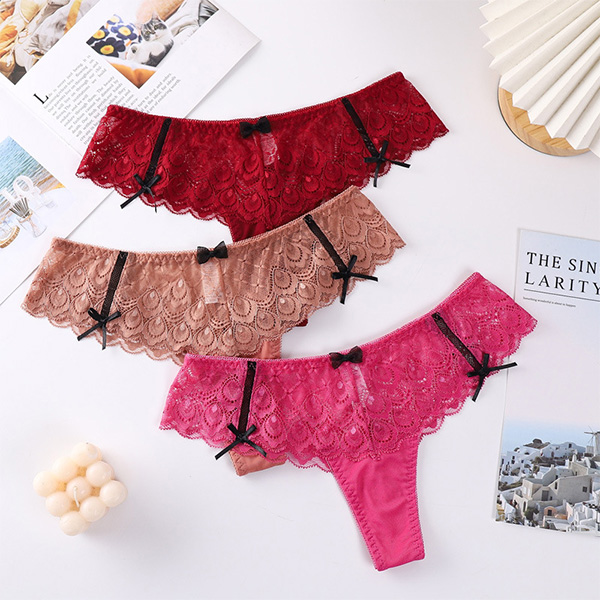 Sexy Contrast Color Bowknot Semi-through Lace Panties
