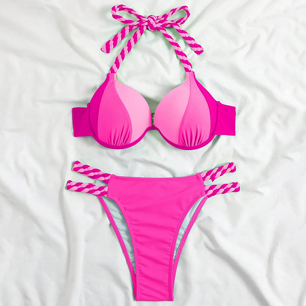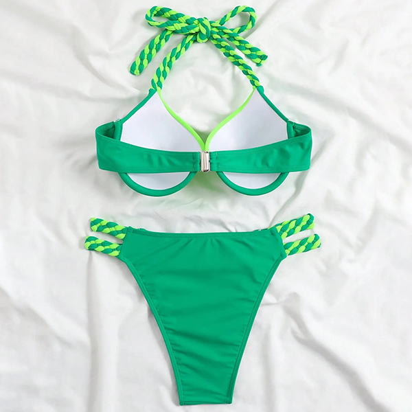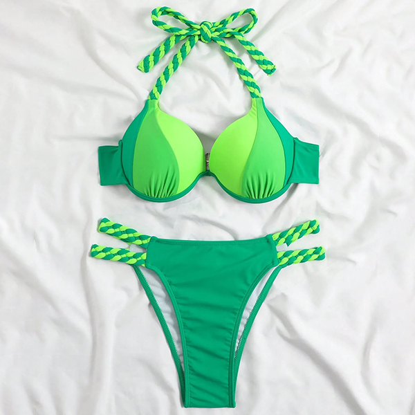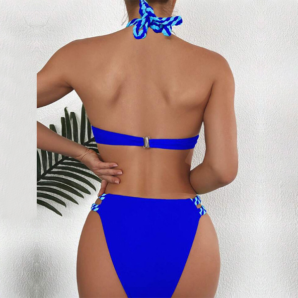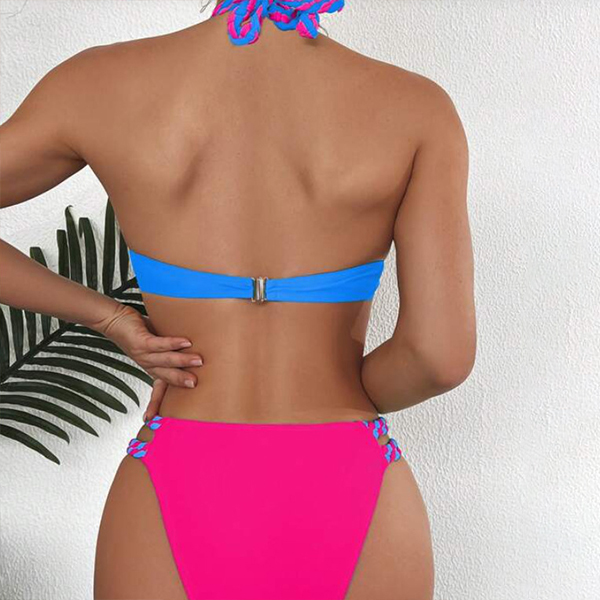 Sexy Contrast Color Cutout Halterneck Two-piece Bikini Set