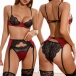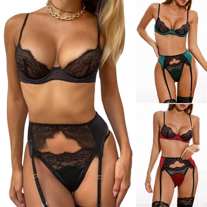 Sexy Contrast Color Eyelash Lace Three-piece Lingerie Set