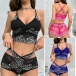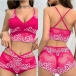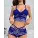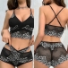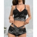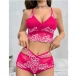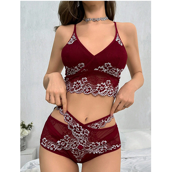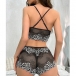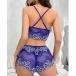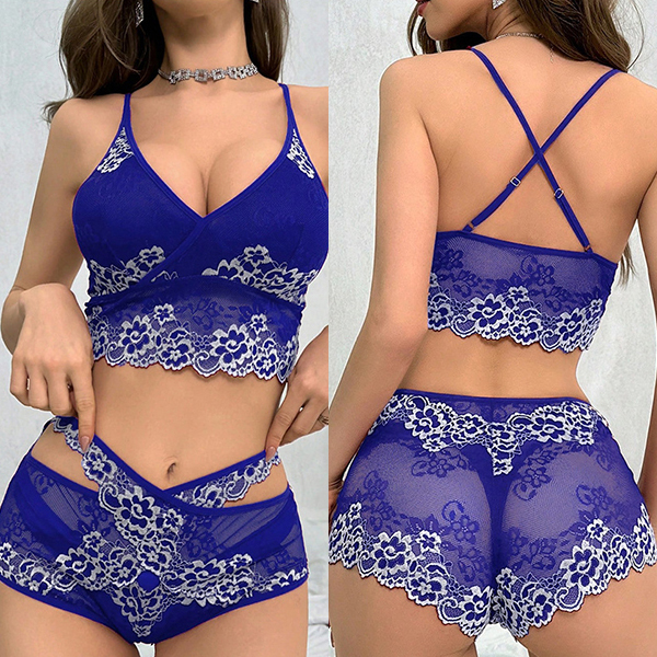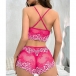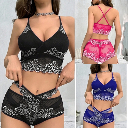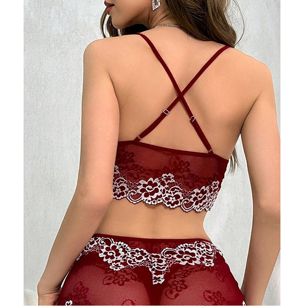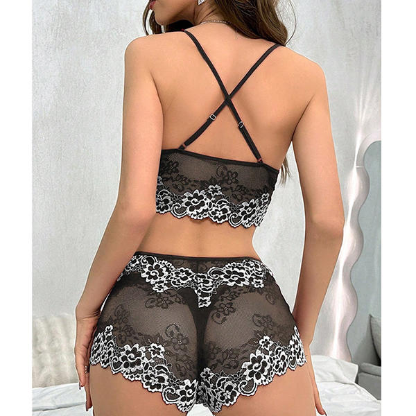 Sexy Contrast Color Floral Jacquard Halterneck Cutout Two-piece Lingerie Set