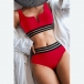 Sexy Contrast Color Gauze Spliced High Waist Bikini Set