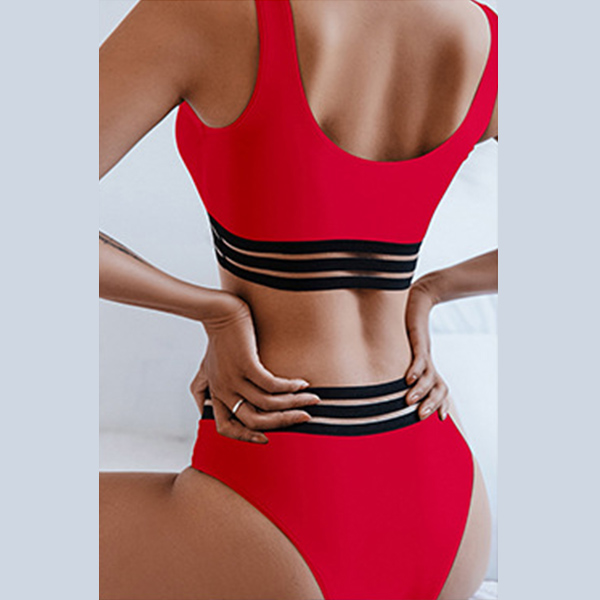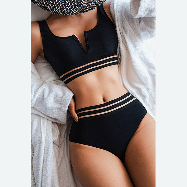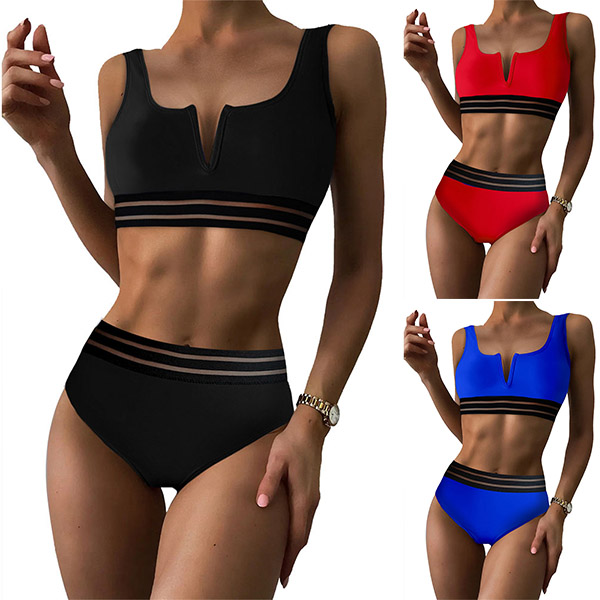 For your summer days when you wanna go to the seaside,then your suitcase should have a bikini set. Made of soft and breathable fabric,this bikini set can give you the comfortable wearing feeling. The bikini set features contrast color gauze spliced design,coming with the matching high waist bikini briefs,which also can flaunt off your seductive curve.