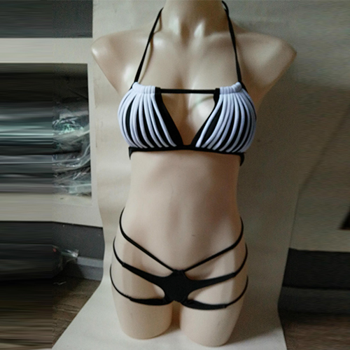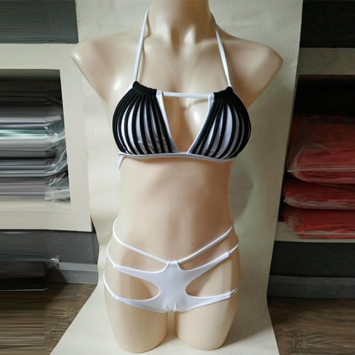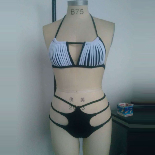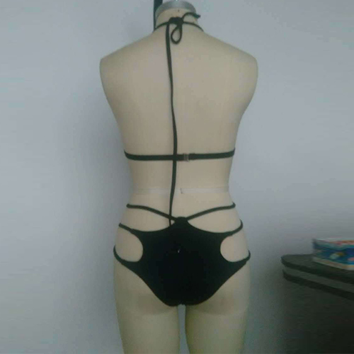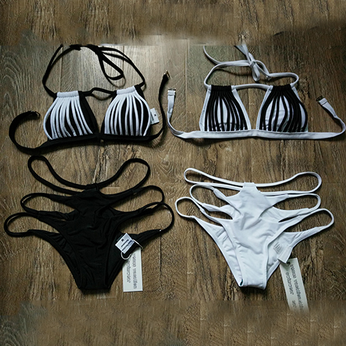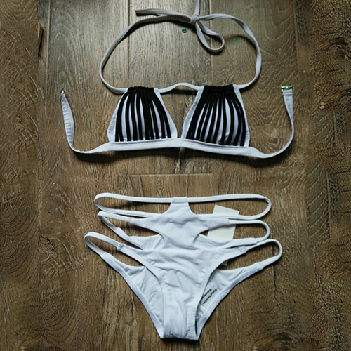 a halter bra and a hollow out briefs,sexy and chic. It is time for your to enjoy your seaside trip happily with this bikini set!