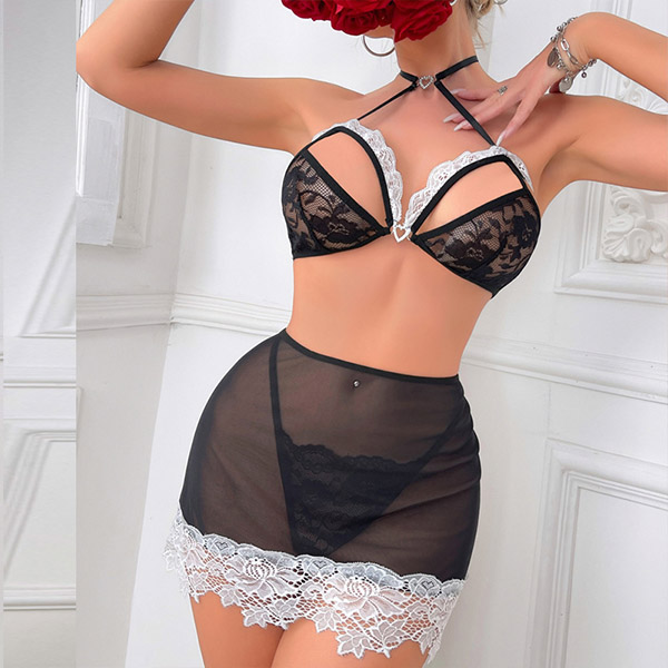Sexy Contrast Color Lace Spliced Cutout Two-piece Lingerie Set