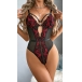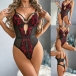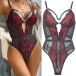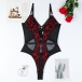 Sexy Contrast Color Lace Spliced Gauze V-neck Lingerie Bodysuit