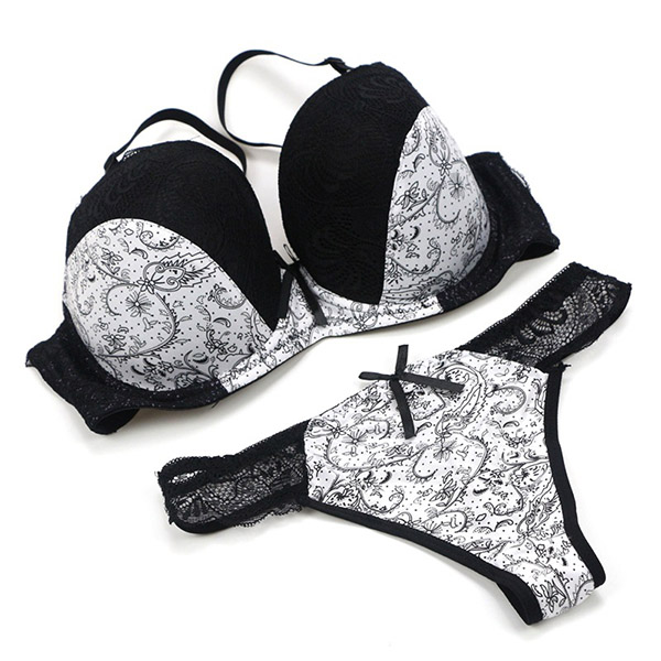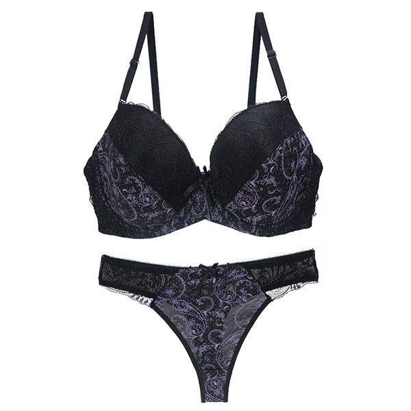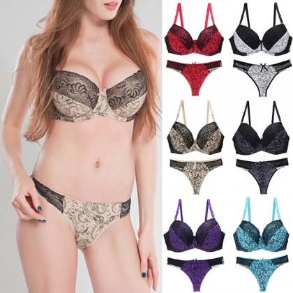 Sexy Contrast Color Lace Spliced Two-piece Lingerie Set