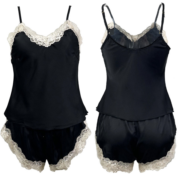 Sexy Contrast Color Lace Spliced Two-piece Nightwear Set
