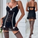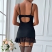 Sexy Contrast Color Lace Spliced V-neck Backless Two-piece Nightwear Dress