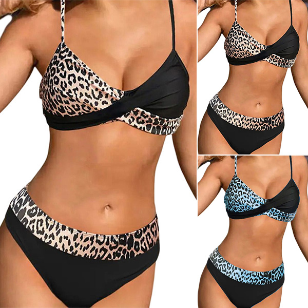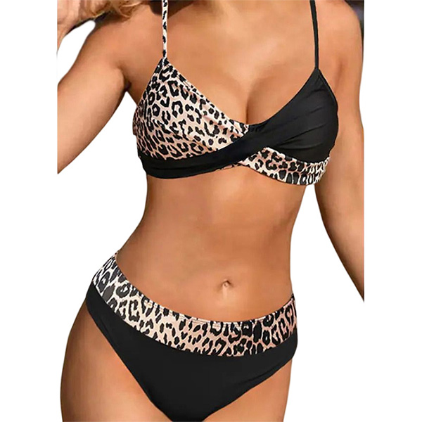 Sexy Contrast Color Leopard Printed Two-piece Bikini Set